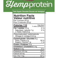 Ingredients - Organic Dark Chocolate: (Per 30 g serving - 2 Scoops) Organic hemp protein, organic cocoa powder, organic dark chocolate flavour, organic stevia extract